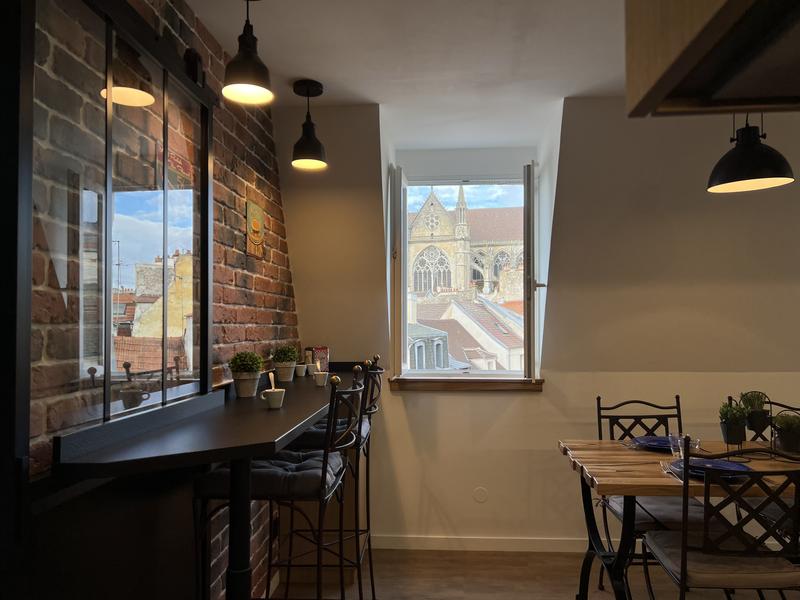 Le Meaux Sacré : VUE UNIQUE sur la cathédrale, situé dans le centre historique et en plein centre-ville, au cœur de nombreux commerces et restaurants Très lumineux et bien agencé, il vous offre des équipements de qualité UNE VUE à couper le souffle