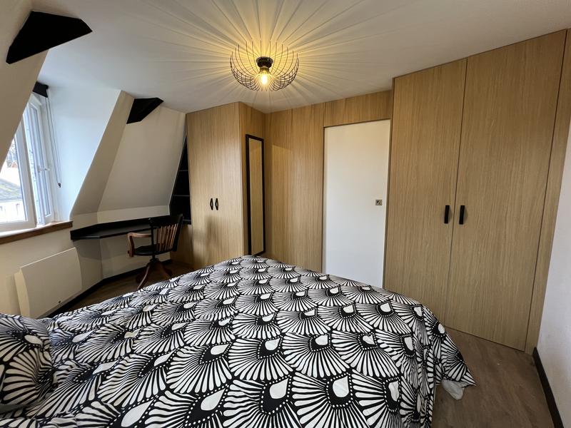 • Afin de vous permettre de passer la meilleure nuit possible, nous avons équipé la chambre principale (séparée du séjour par une porte coulissante) d'un lit Queen Size 160 x 200 cm avec une literie de standing.