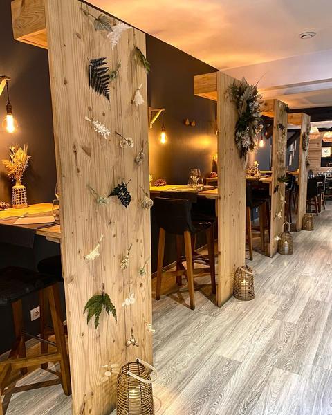 Évadez-vous ainsi pour une parenthèse gustative dans le cadre élégant du restaurant, alliant la sobriété à la nature et profitez de son ambiance chaleureuse.